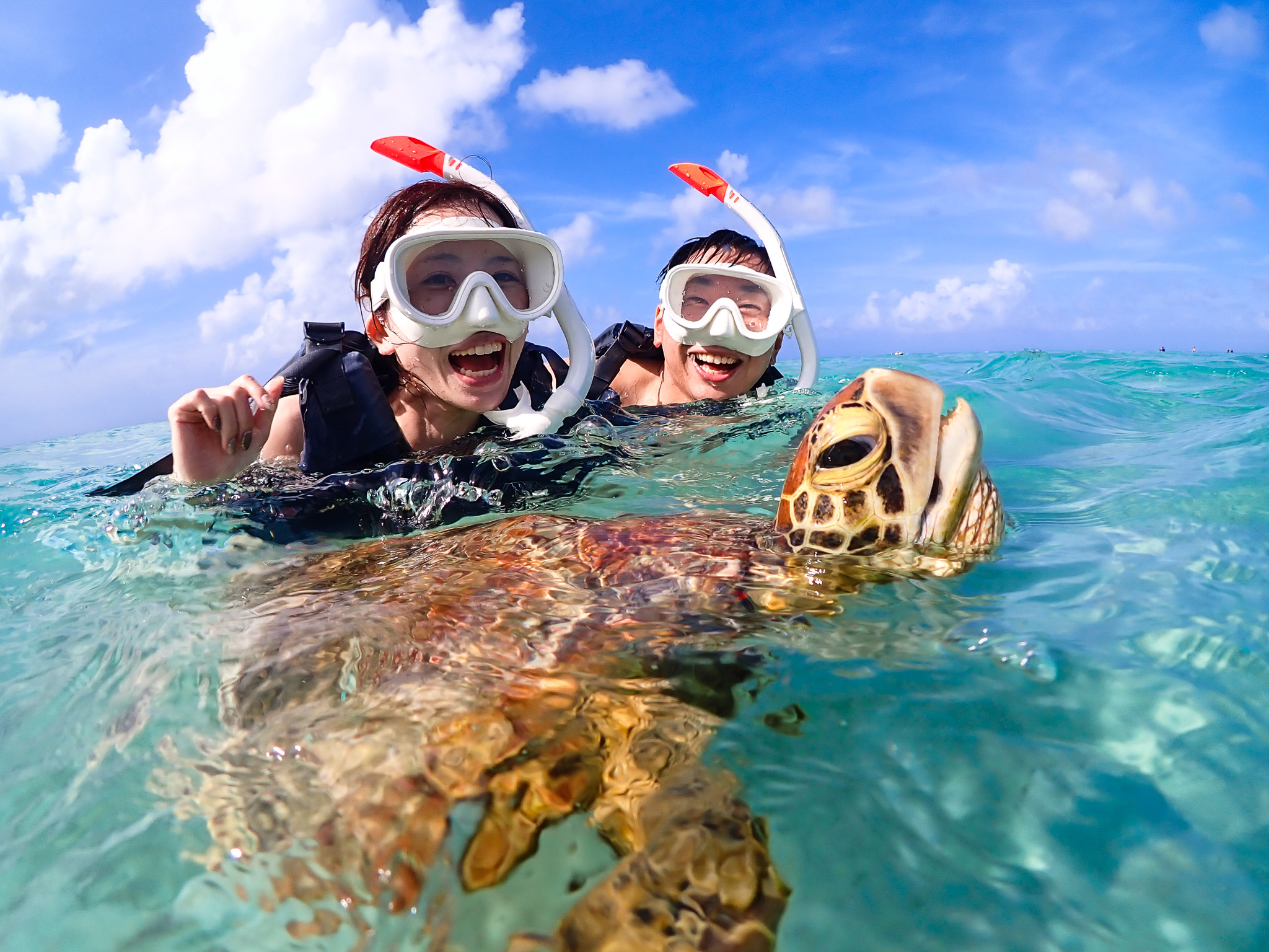 お子さま連れの若いご夫婦におすすめするのは、泳げないお子さまでも安心して参加できるウミガメシュノーケルツアーです。