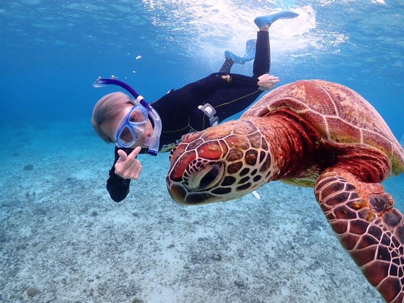 宮古島在住の専属ガイドが常に寄り添い、浮具を使って無理なく海を楽しめるため、初めての方や海が不安な方も安心。ウミガメと同じ目線で過ごす、穏やかで特別な時間をご用意しました。